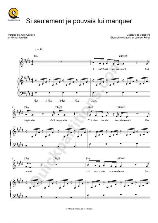 Si seulement je pouvais lui manquer Piano Sheet Music from Calogero.