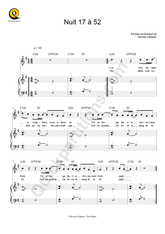 Nuit 17 à 52 Nuit 17 à 52Paroles et Musique deHeloise Letissier© Because Editions - First Match 1.LàMoiNuitdansdixuneseptco--q = 88-àlèrevingtquinedeuxme-nousresésem-tionsblait--pasToiNuitalcinlonquante--gé,j'ai-forli--leé-d'orsangneet-mentla-4froidfoiToiNuitalcinlonquante--gé,j'ai-forli--éle-d'orsangneet-mentla-froidfoiyeahyeah7444444G/DGŒ„Š7/DC5/DD5G/DGŒ„Š7/DC5/DD5G/DGŒ„Š7/DC5/DD5G/DGŒ„Š7/DC5/DD5G/DGŒ„Š7/DC5/DD5Quickpartitions.com