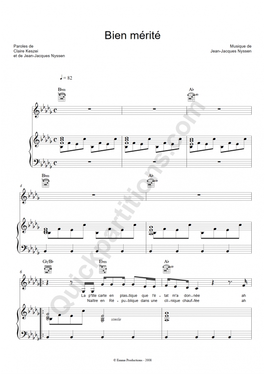 Bien mérité Piano Sheet Music from Clarika.
