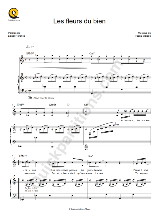 Les fleurs du bien Piano Sheet Music from Pascal Obispo.