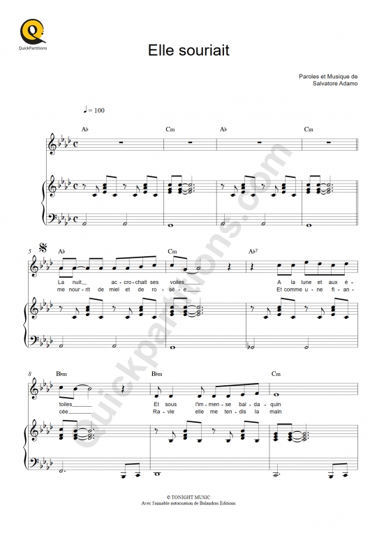 Elle souriait Elle souriaitParoles et Musique deSalvatore Adamo© TONIGHT MUSICAvec l'aimable autorisation de Balandras EditionsC‹C‹q = 100meLanournuitrit-demielacetcro-dechait-rosesvoilesC‹-e-A¨7EtAcommelauluneneet-fiauxané---5céetoilesB¨‹RaEtB¨‹viesous-ellel'immemen-tense-disbal-lada-mainquinC‹-8cccQuickpartitions.com