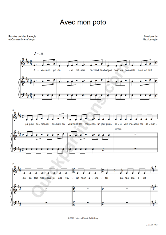 Avec mon poto  Paroles de Max Lavegieet Carmen Maria VegaMusique deMax LavegieAvec mon poto© 2008 Universal Music PublishingAvec-monpoto-ici-présent-onvenddesbadgespourlespassants-nousonfaite = 138çapourmar-rer-ensuite-onveutfairelesmarchés-unjourj'suisal-voirmasœurj'aideman--accel.6-detoutmoncœursiellevoulait-m'enache-ter-née-elleadit968c68c68cccc24c24c24c U. M. P. 7063Quickpartitions.com