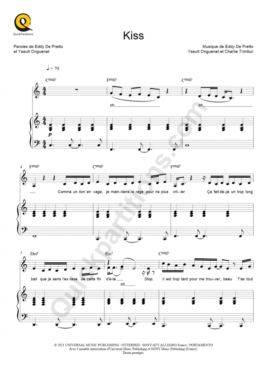 Yseult raconte au sujet de la chanson Kiss, qu'elle "rappelle que malgré tout le soin que nous pouvons y apporter les amours comme les amitiés peuvent se ternir avec le temps, malgré tout ce que nous pouvons y mettre dedans." Dans ce second titre interprété en avec Eddy de Pretto, le piano s'invite entre le duo. Découvrez notre partition de ce morceau tout en douceur.