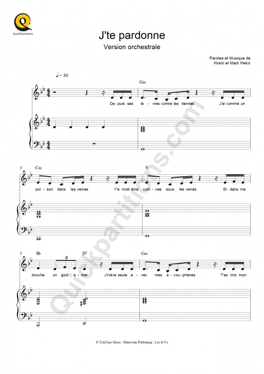 A l'occasion de la réédition de son album Etoile flippante, Hoshi dévoile 5 titres en version orchestrale dont J'te pardonne. Véritable hymne à l'amour et au pardon, le texte puissant et sincère de la chanson est ainsi mis en valeur par une instrumentation acoustique et épurée. A vous de jouer avec notre partition piano de l'un des titres les plus populaires d'Hoshi.