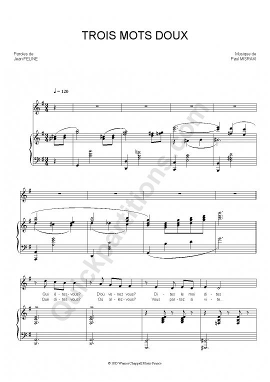Trois mots doux Ray Ventura Partition piano
